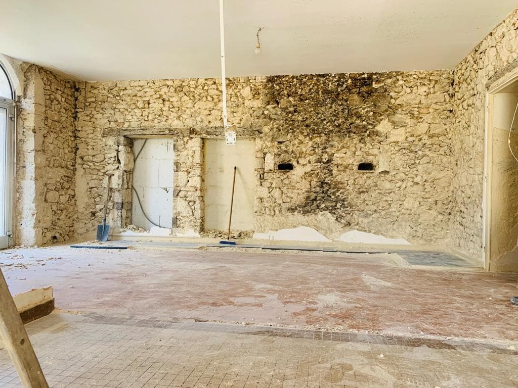 Work commenced on April 6th, with a team of four: Laurent (stonemason), Yannick (carpenter / electrician / plumber), Sam and Francesco (labour). In the last month, they have stripped back the interior to what the original farmhouse looked like when it was built. All false ceilings are gone, as are all dividing walls, and every original doorway has been opened up. They are now in the process of ‘raking out’, making the property ready to put fresh mortar in. After another week of work, we’ll be ready to start construction.