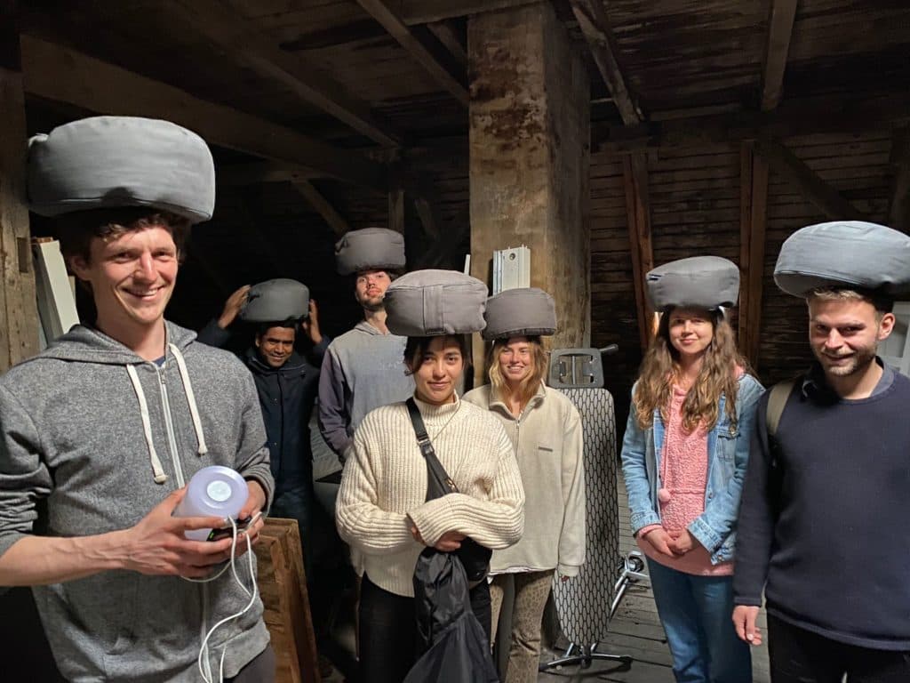 What you can't plan: What if one person starts to balance their meditation cushion on their head - prompting others to follow and challenge themselves to go from top to bottom of the building like this. Is this how rituals are born?