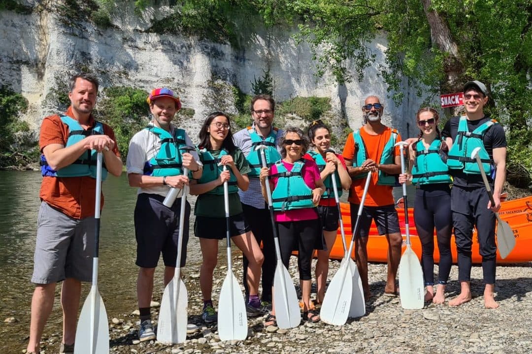 Over the past month, the Bergerac Hub has been host to our fifth Sympoiesis residency: Making Eco-Spirituality Accessible. The residency was facilitated by Rupert Read, academic and former spokesperson of Extinction Rebellion and the UK Green Party. Rupert led us in fascinating and challenging conversations on spirituality, religion, communicating on climate change, the moderate flank, and the part spirituality can play in our response to climate change. Our attendees also held workshops in their fields of interest and expertise including climate change science, non-violent communication, and climate change and mental health. We also took part in daily meditative practices, attended Plum Village’s Day of Mindfulness on Sundays, went kayaking, swimming, visited some prehistoric caves, and had a talent night!