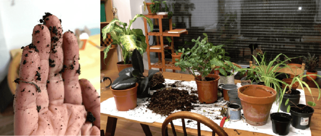 Remember these little guys on the left? After a couple of months our vermicomposter has produced plenty of rich soil, which has then right away been used to revitalize the plants in the common space. The plan now is to continue on this path, which might include a Macramé-hanging-plants project, and a permaculture workshop.