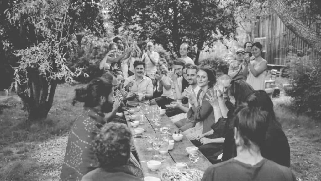 Life itself residencies are based on a daily structure in order to create a container in which the collective body can move together and sustains each participant . This is the question of what we call the Minimum Lovable Product , what is the structure sufficiently strong to hold us as a community and sufficiently flexible to integrate our individualism? those residencies are directly inspired by the monastic zen communities adapted to our secular reality, a laboratory for mettamodern communities.